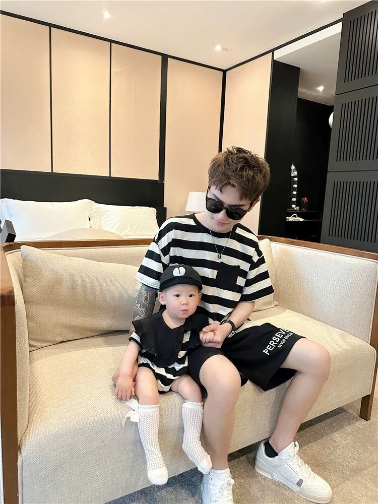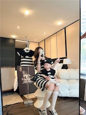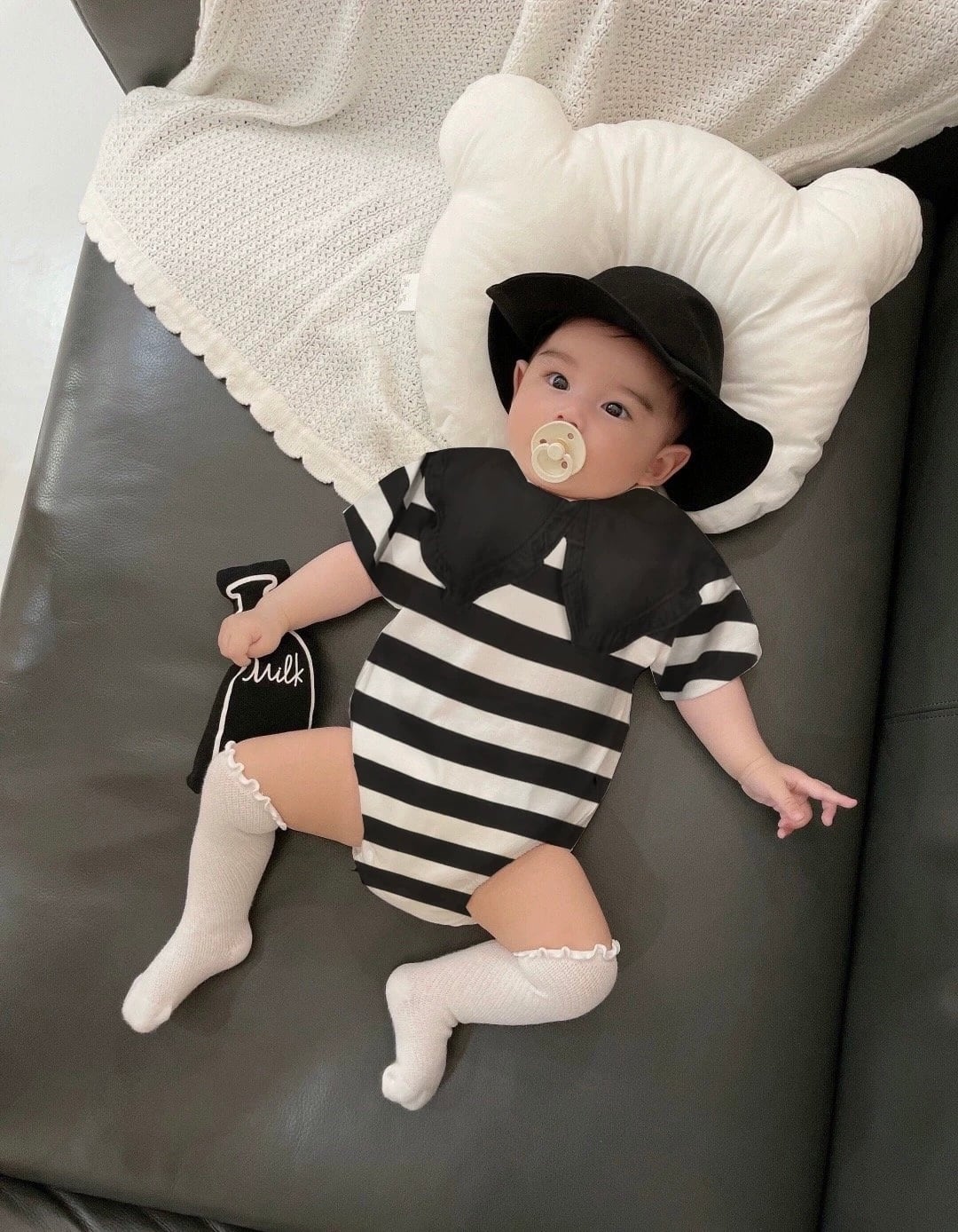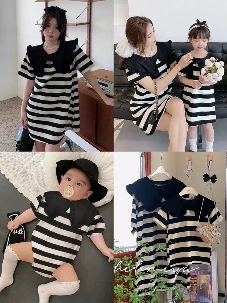 【予約/ベビー】デカエリボーダーロンパース