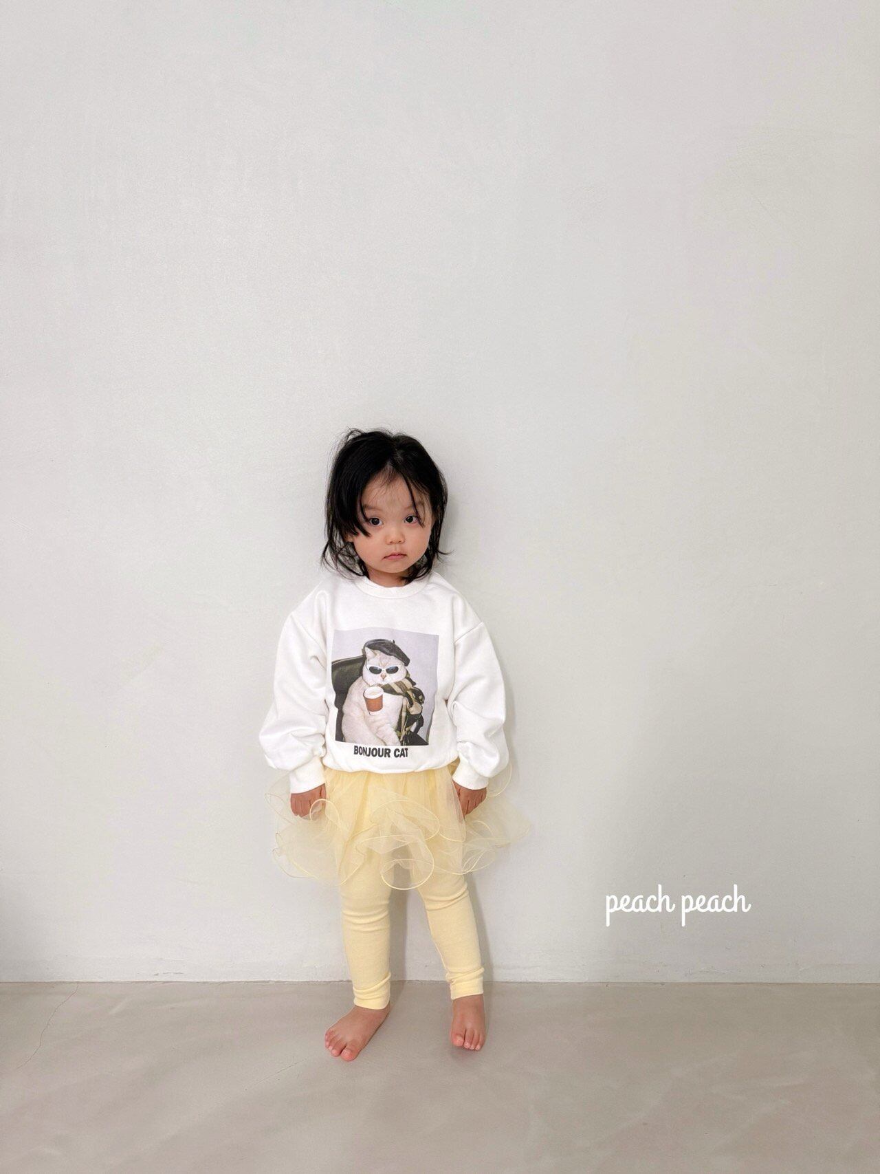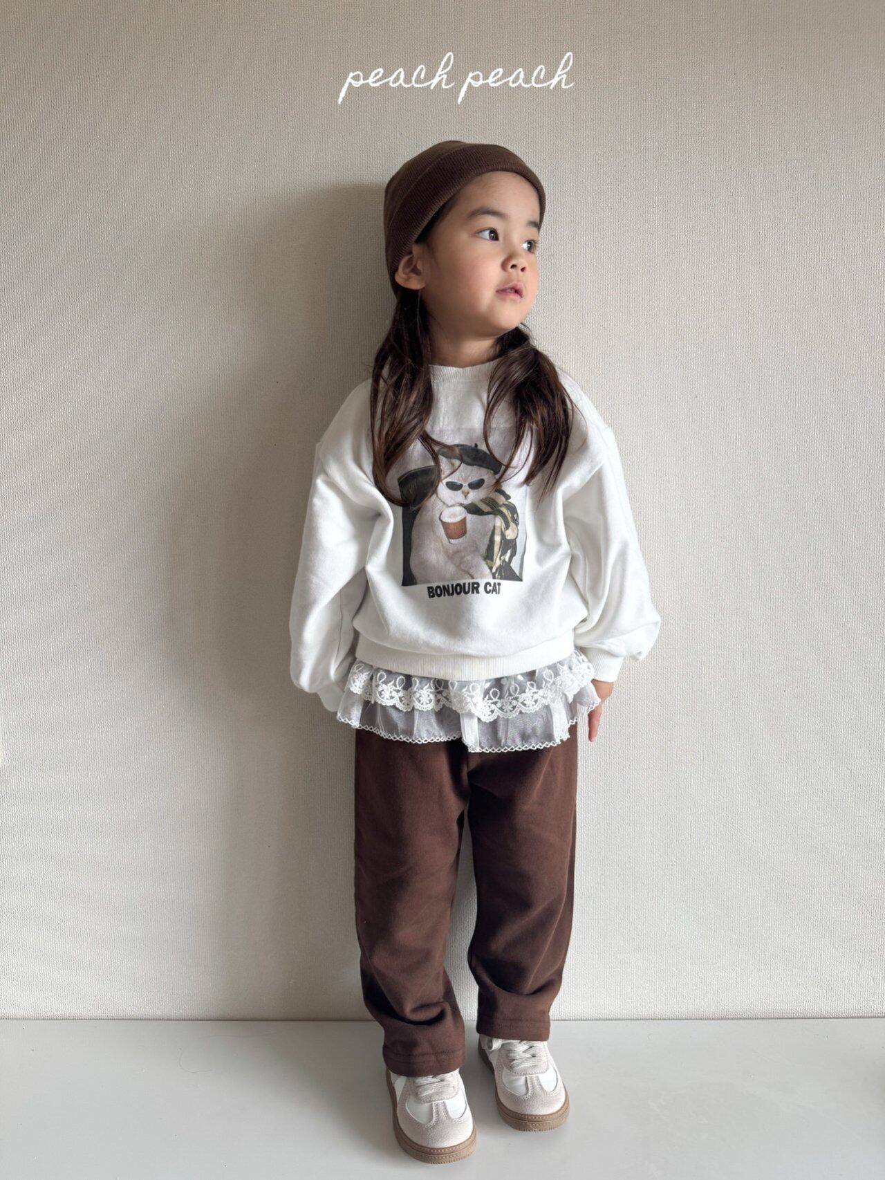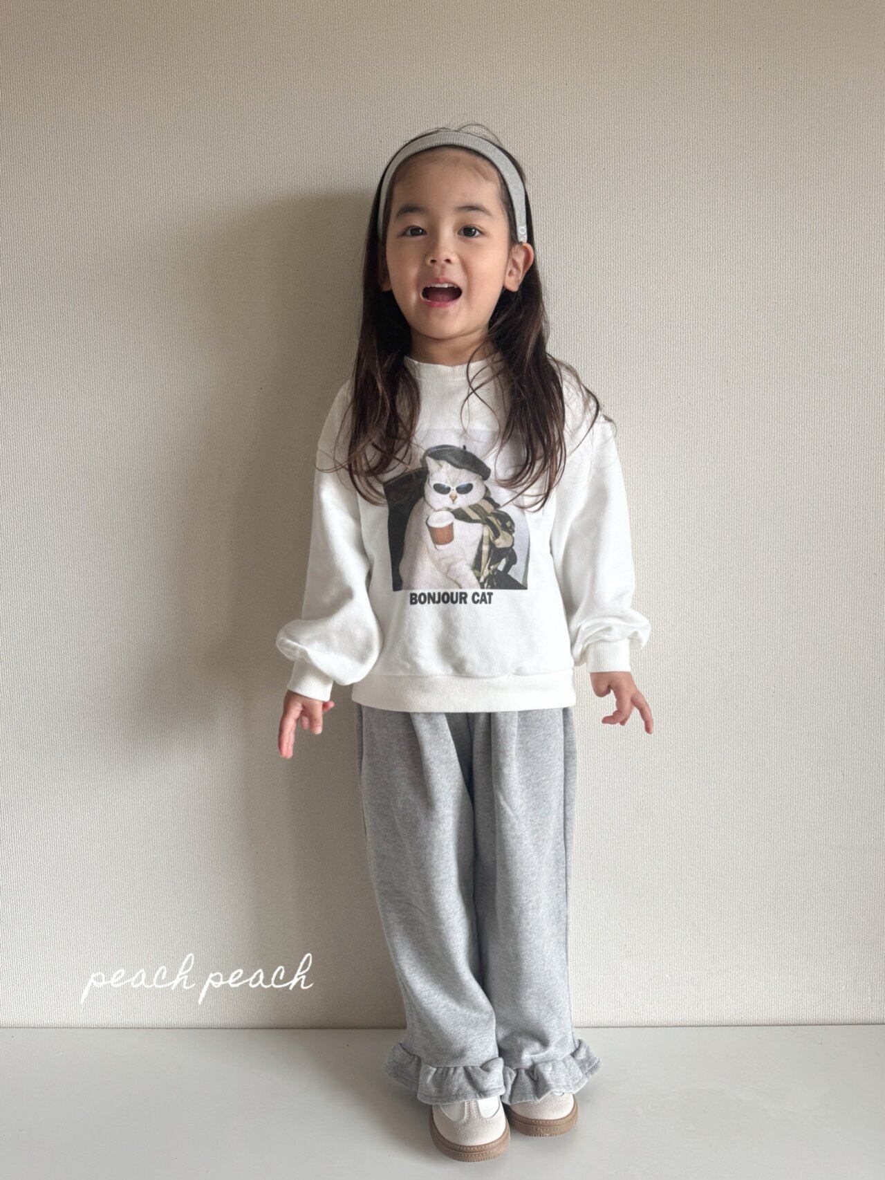 peach peach【即納/子供】French Cat Man to Man