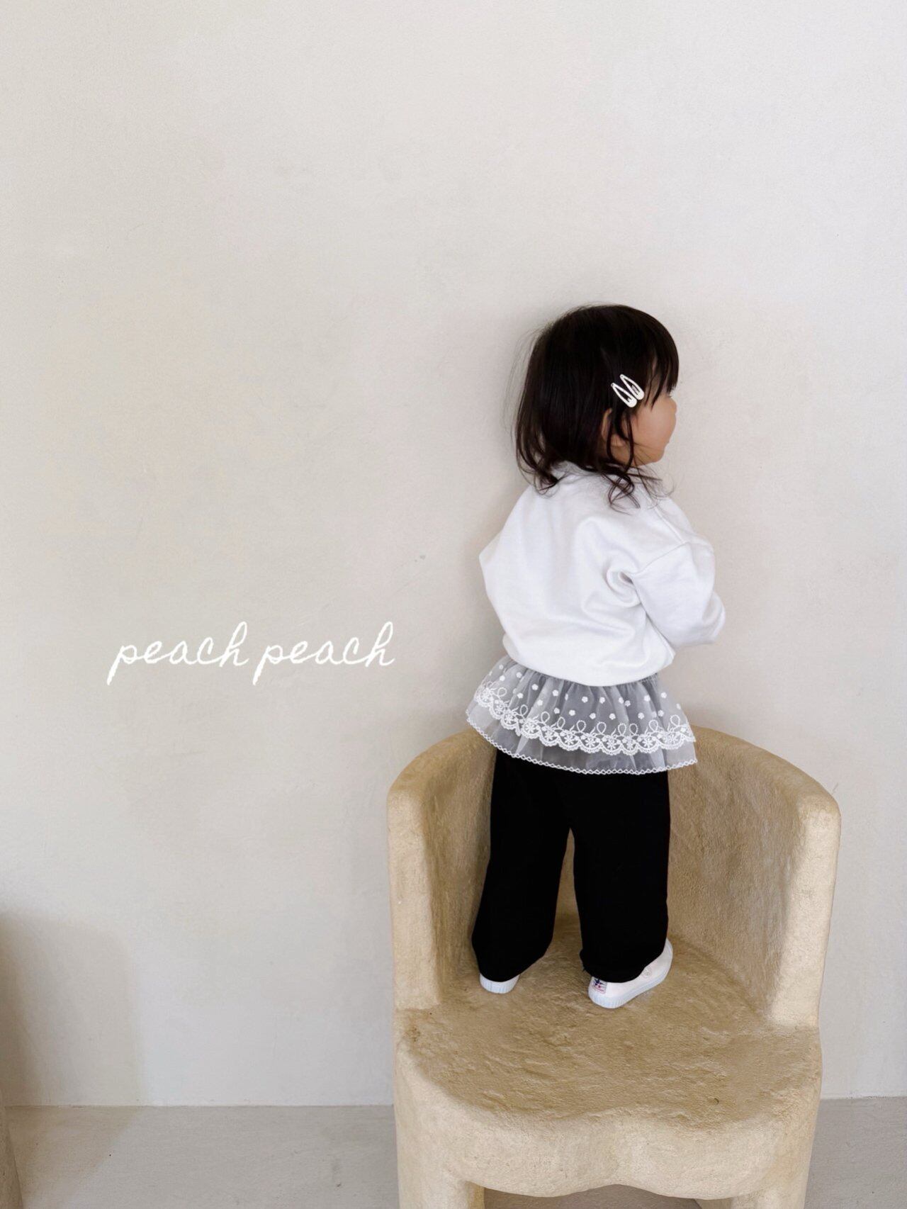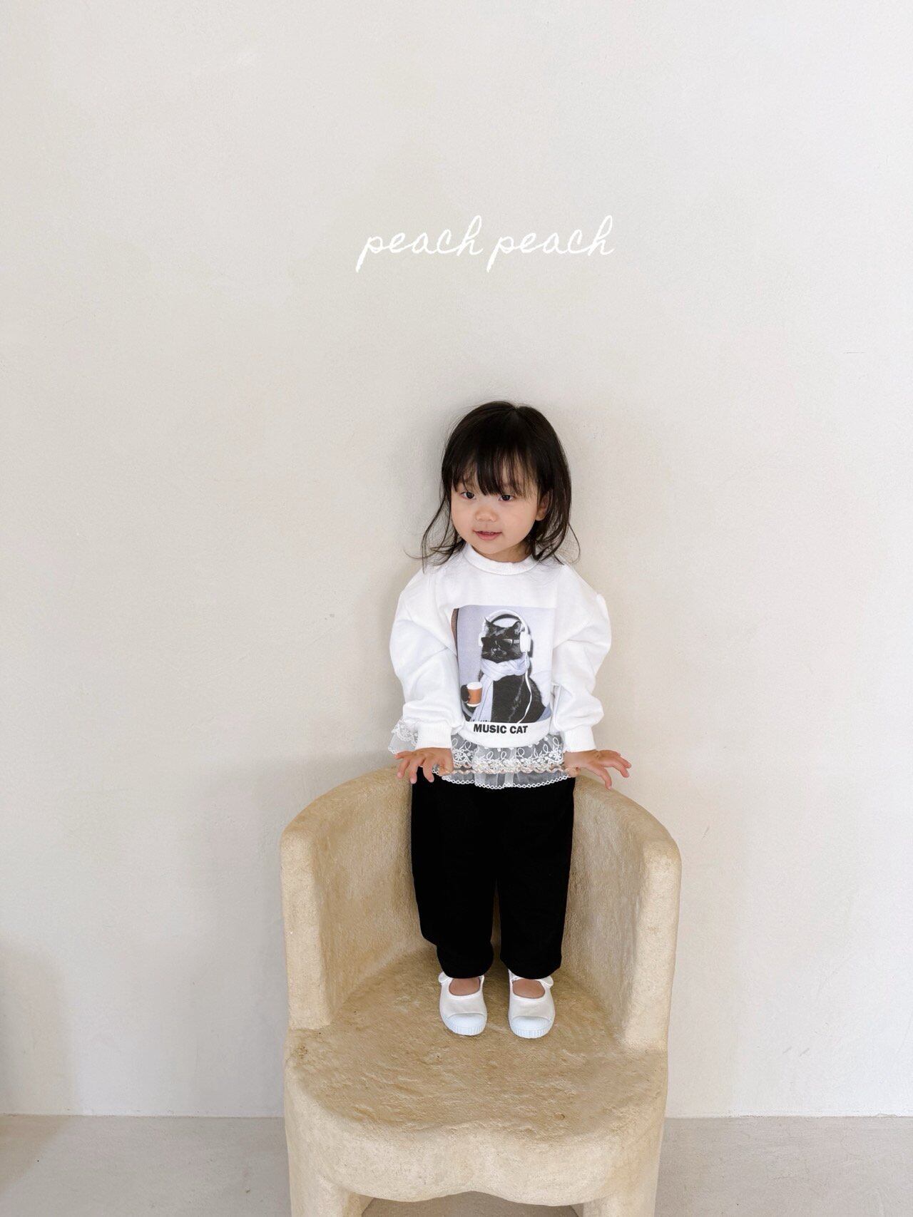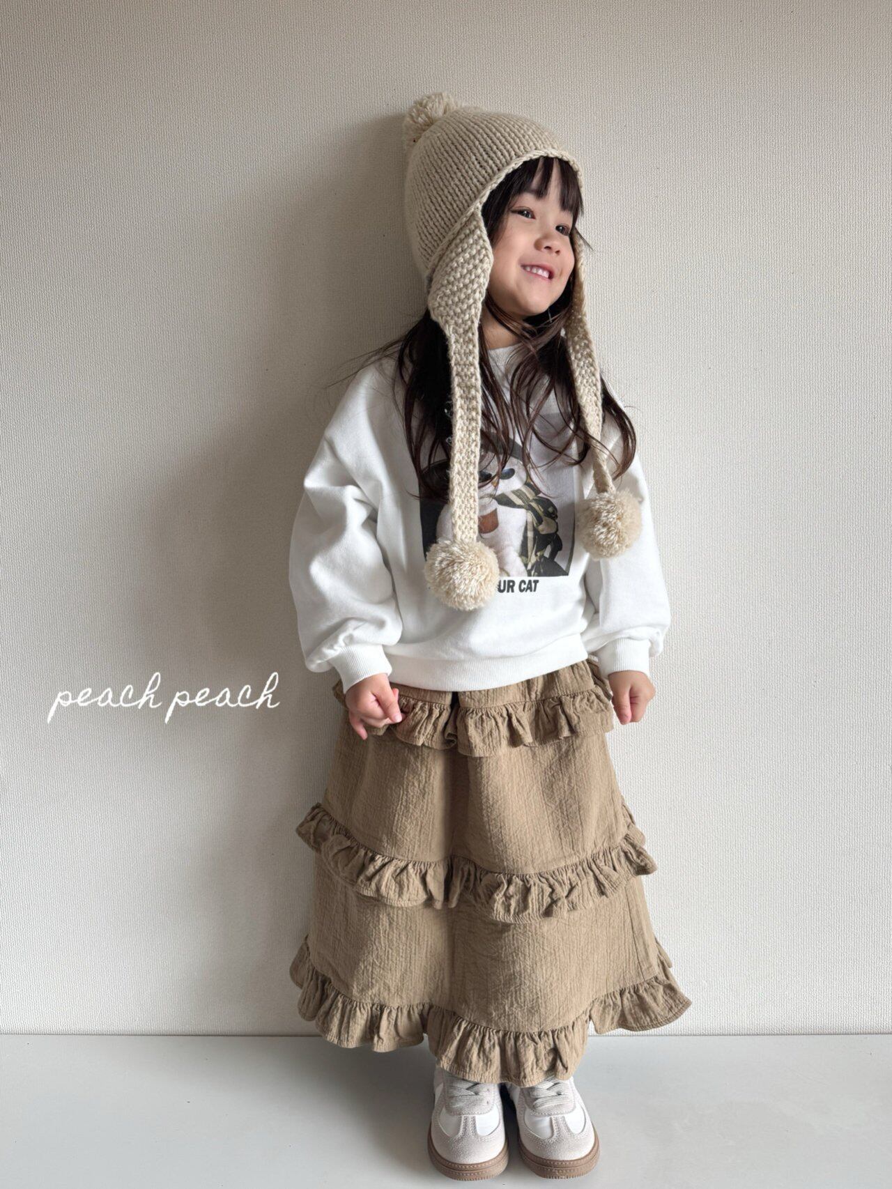 peach peach【即納/子供】French Cat Man to Man