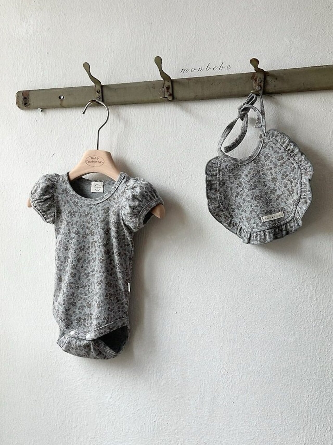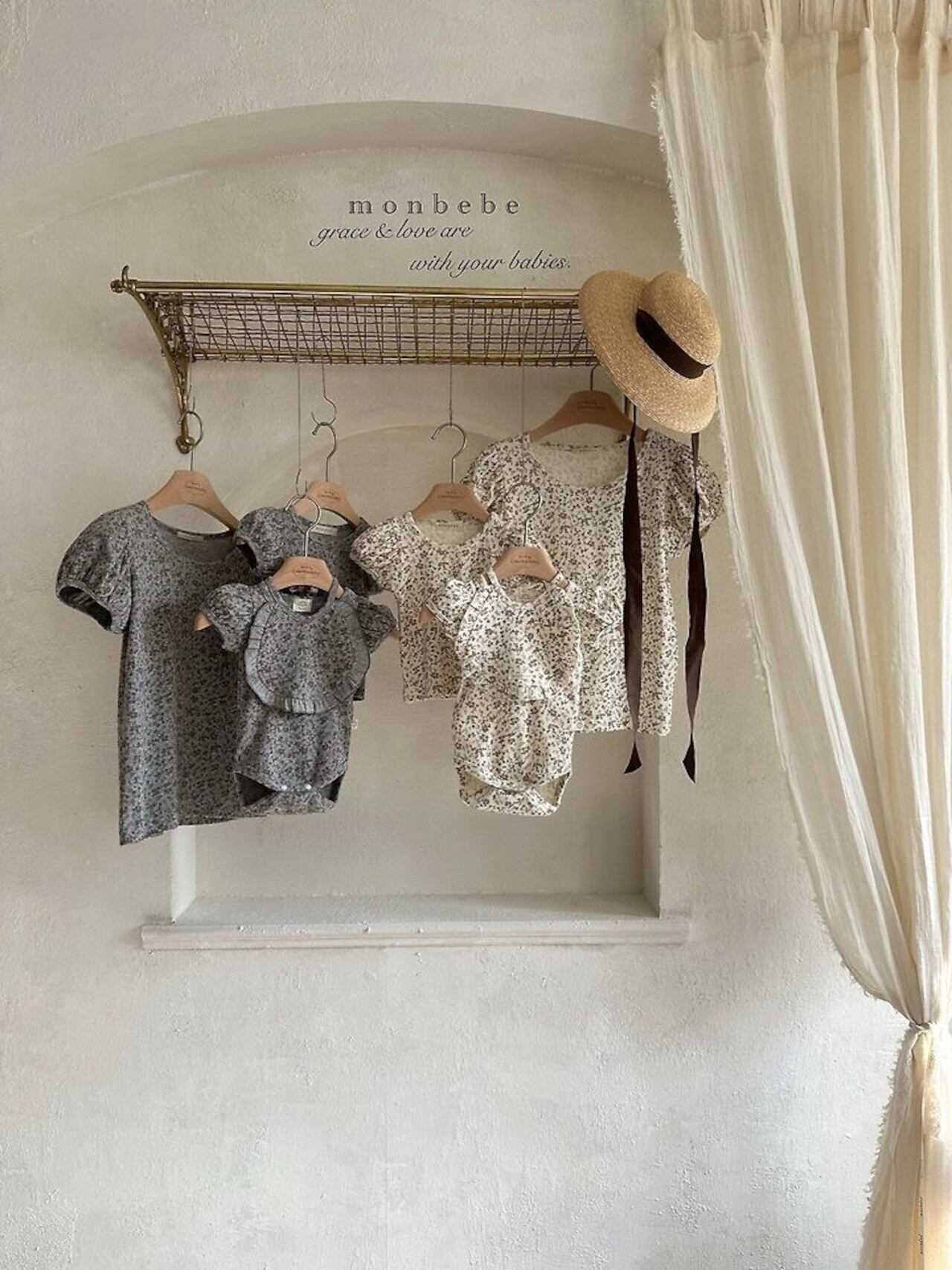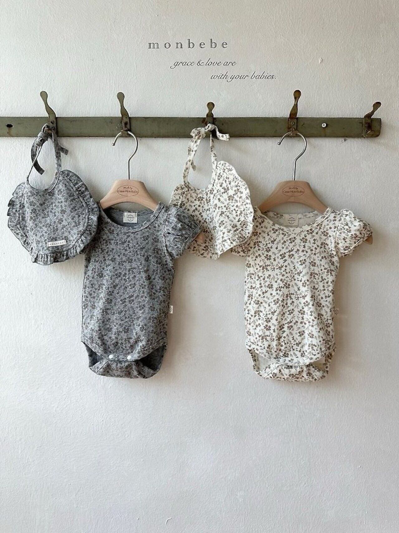 monbebe 送料無料【 予約 / ベビー 】Puff flower suit (bib set)