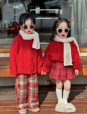 家族でリンクコーデができるケーブルアカニット
