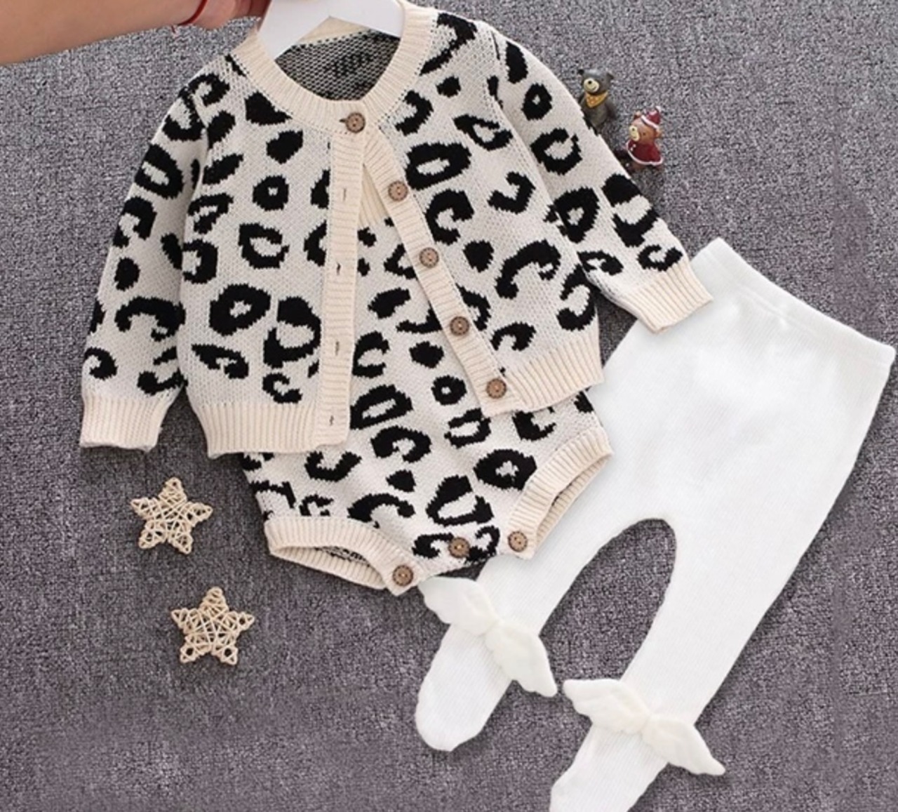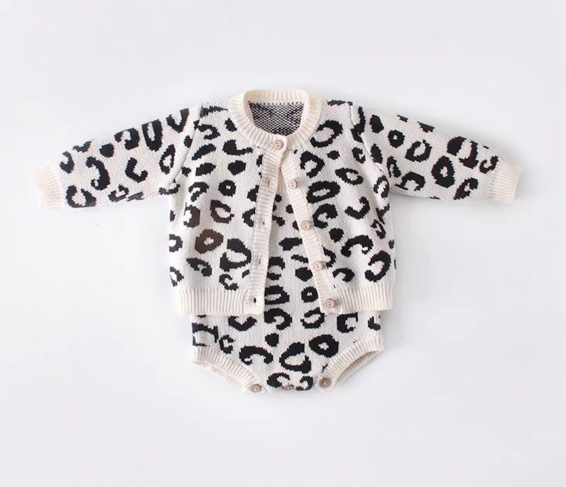 可愛らしいヒョウ柄が特徴のベビーセットアップ!