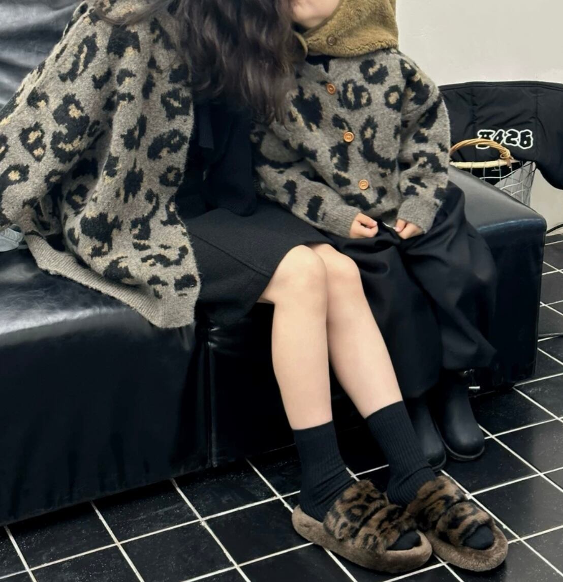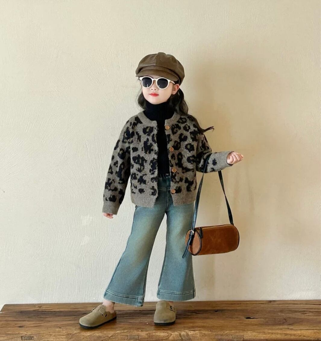 かわいらしいヒョウ柄が目を引く子供用カーディガン!