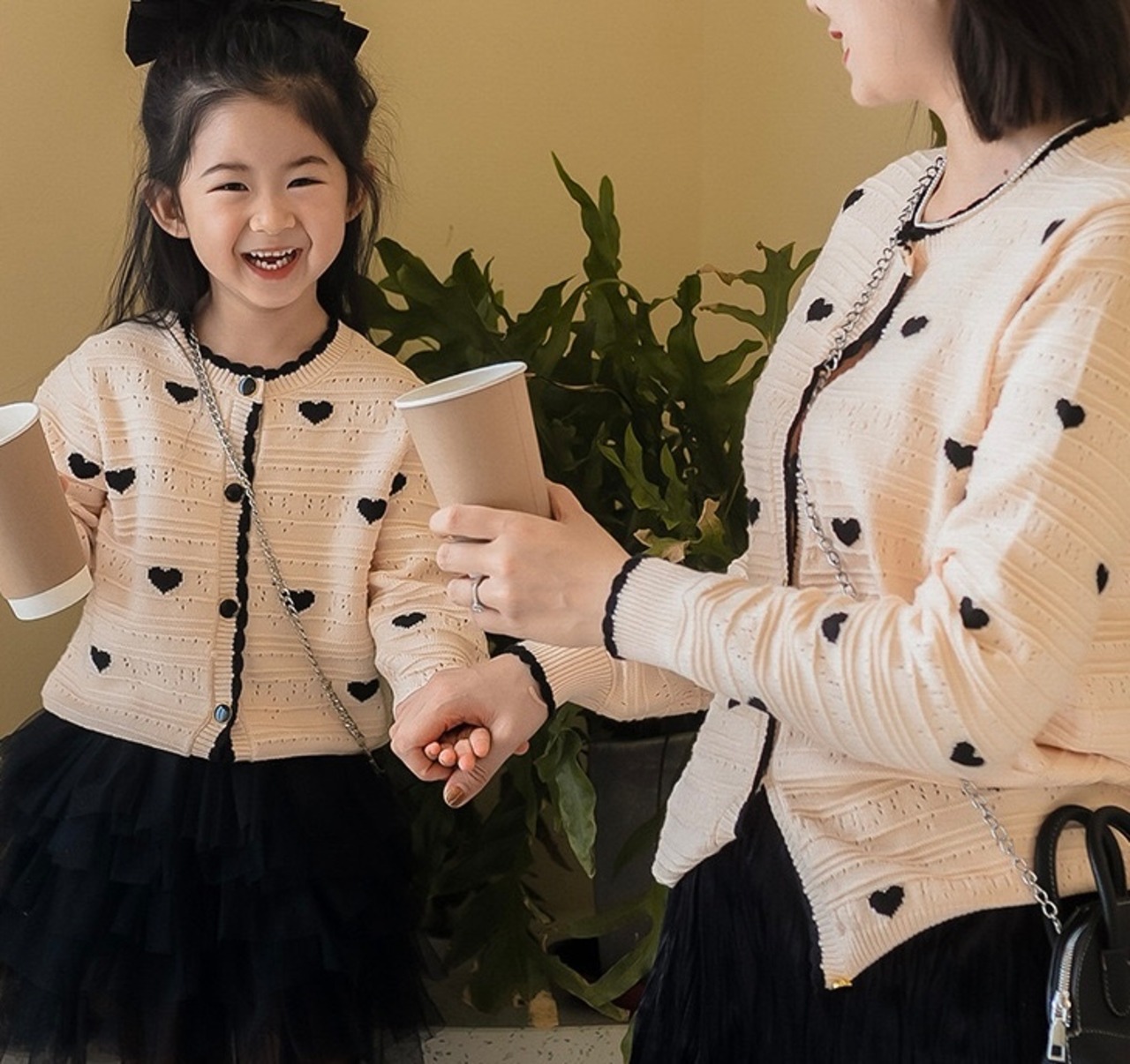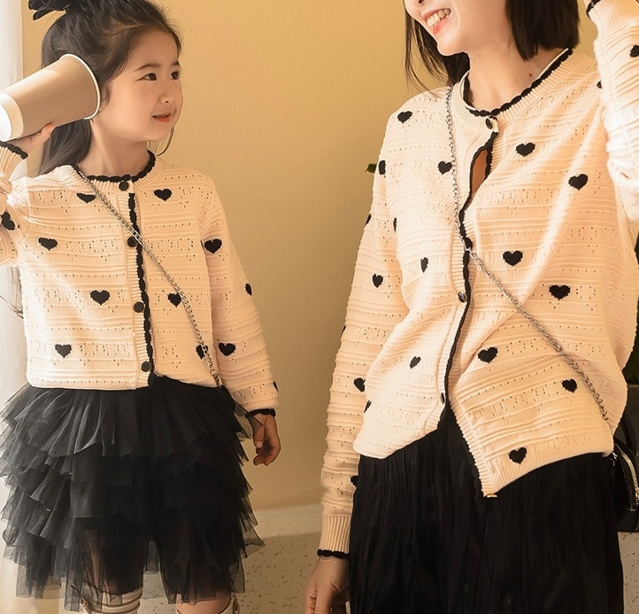 親子で楽しむリンクコーデに、華やかなハートデザインが加わります!