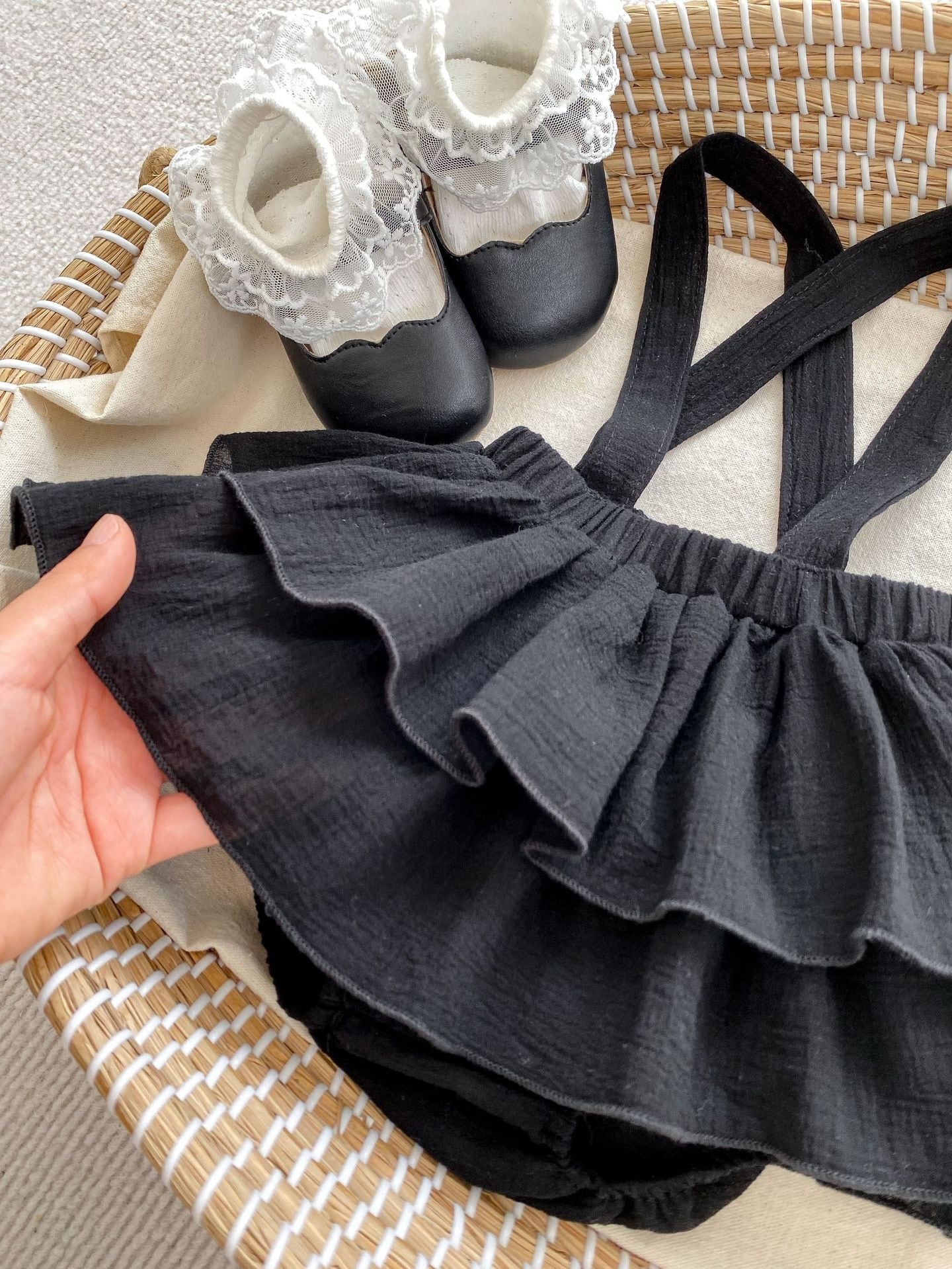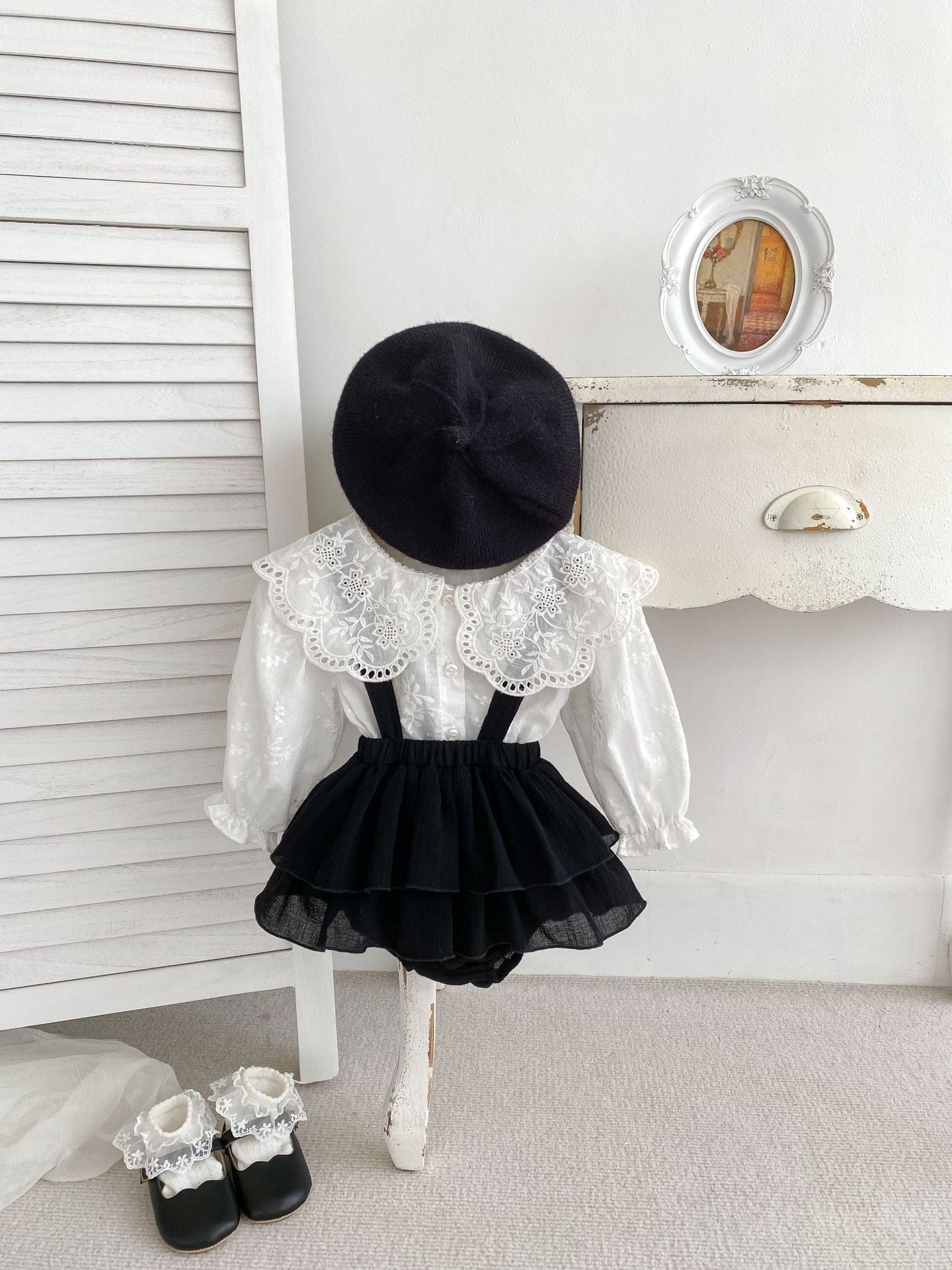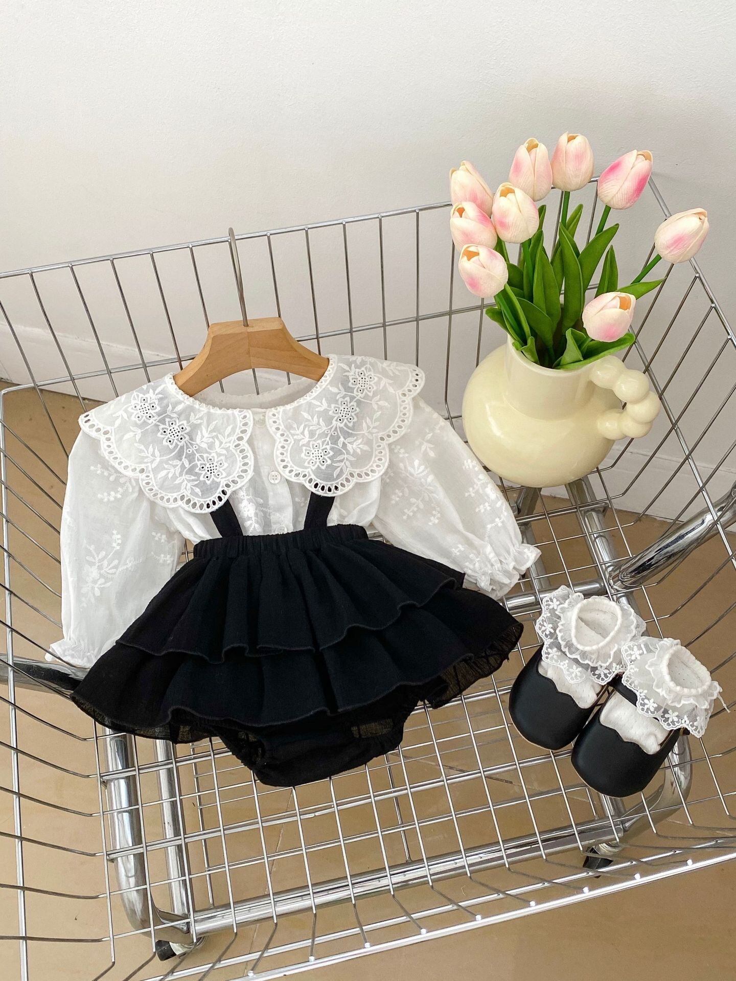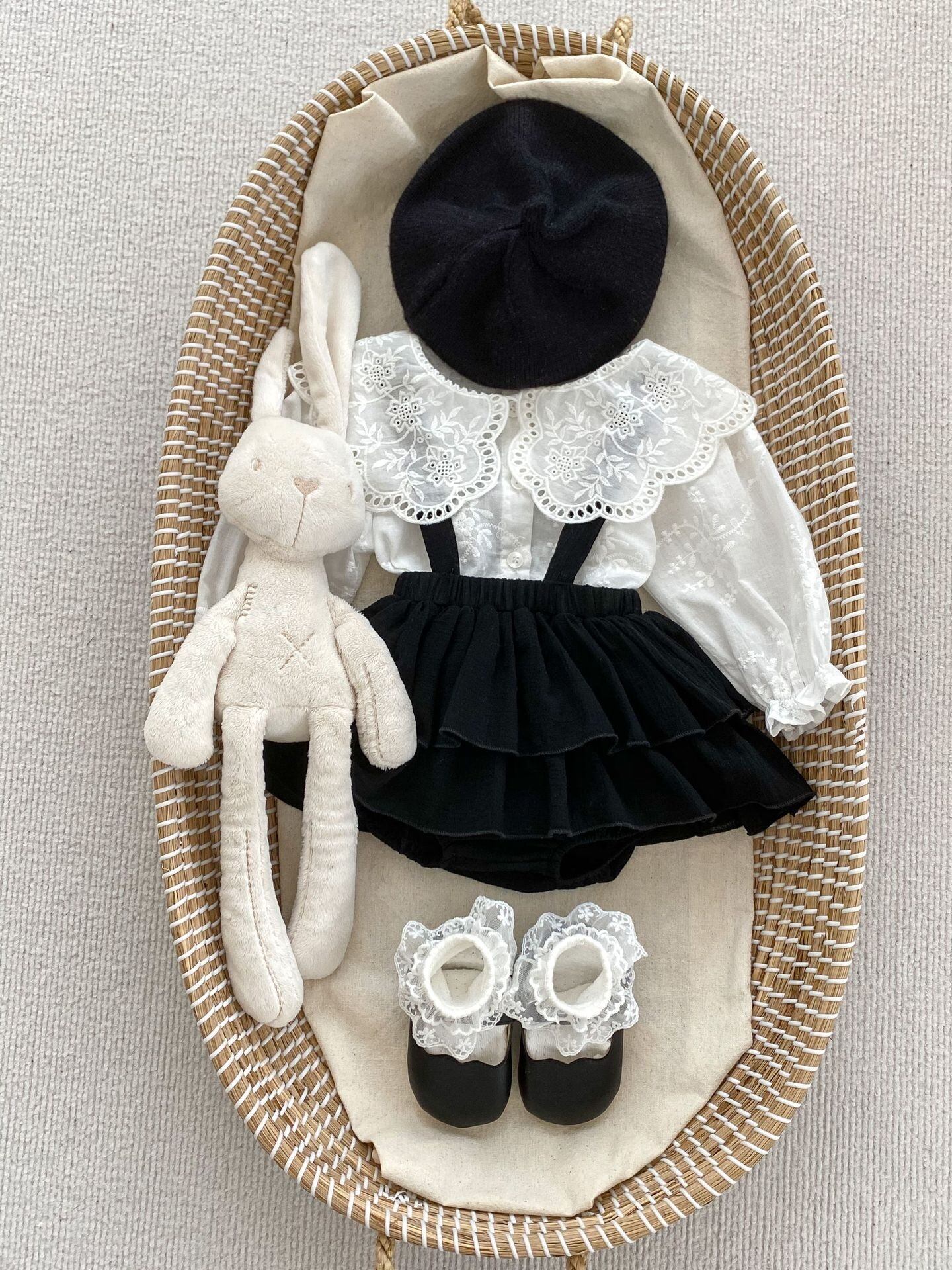 可愛らしいレースが施されたブラウスとブルマのセットが登場!特別な日やお出かけにぴったりなアイテムです。上品でありながら、愛らしいデザインが魅力的で、赤ちゃんの可愛さを引き立てます♡