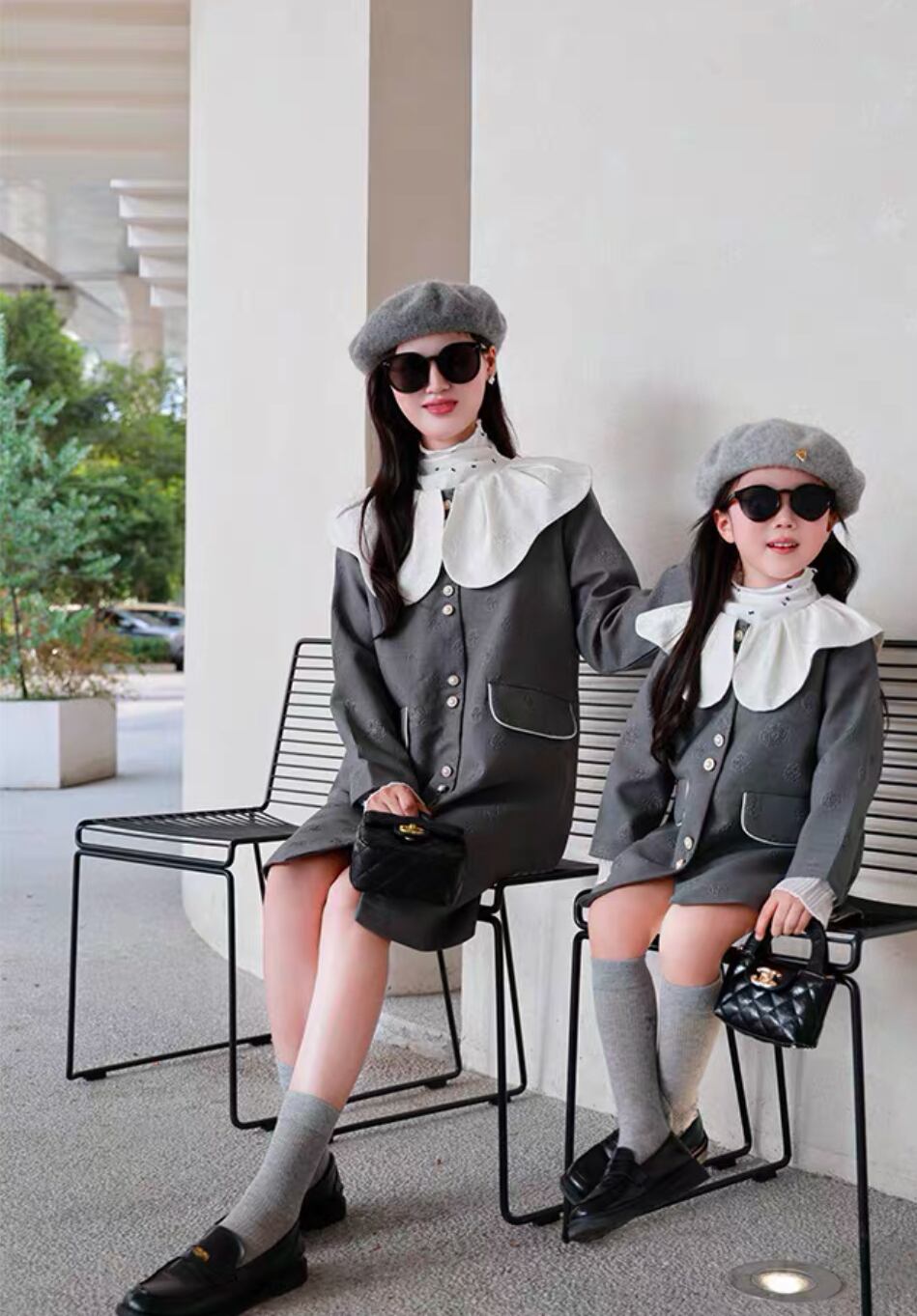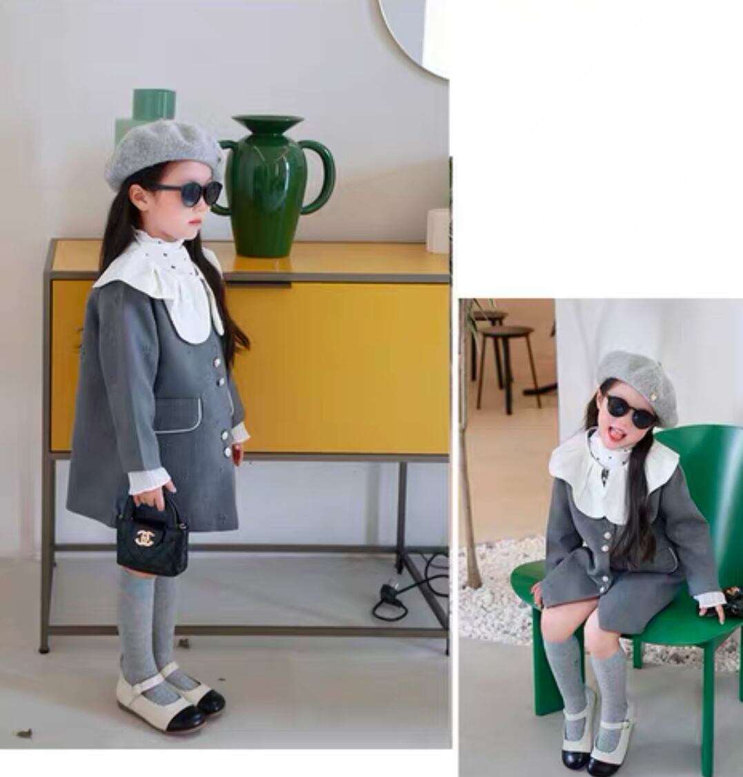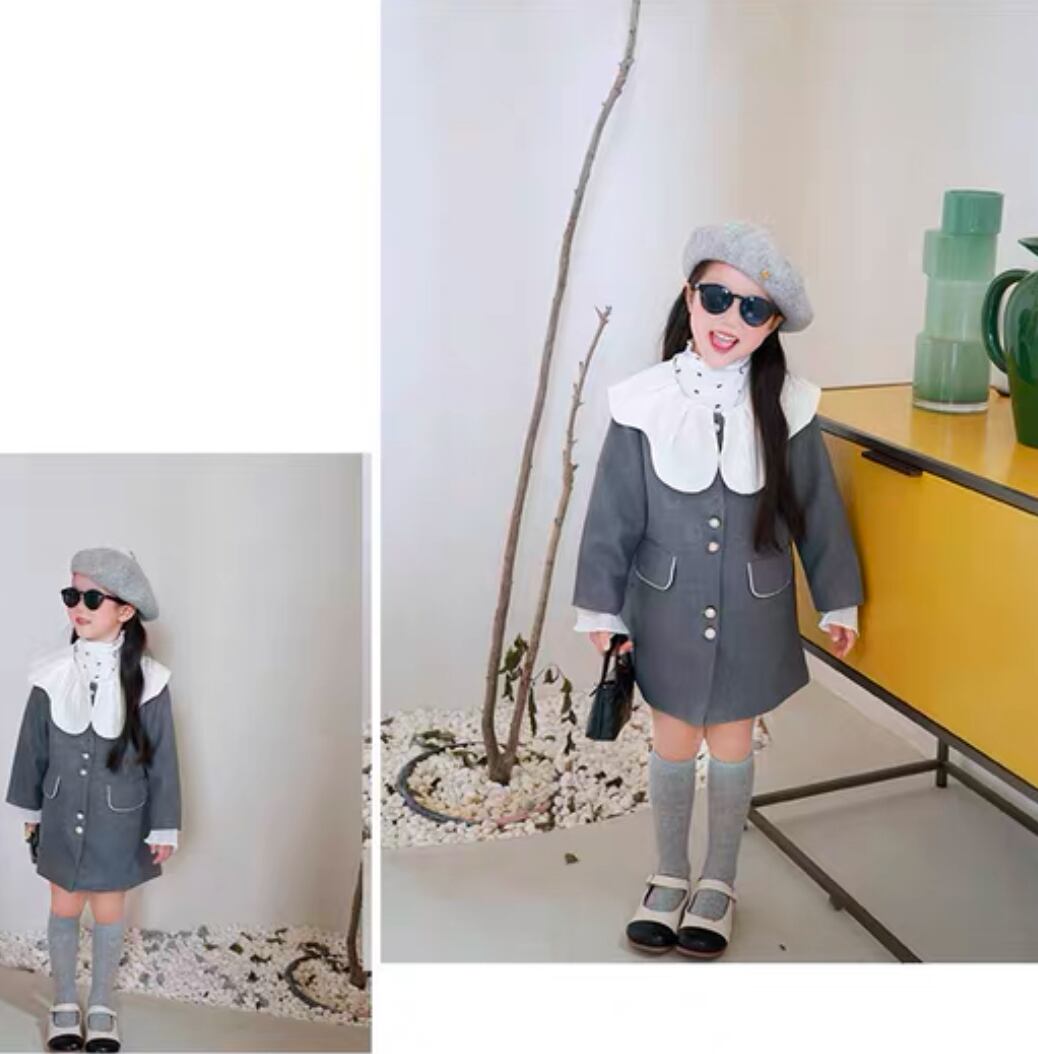 シックで洗練されたリンクグレーワンピースが新登場!上品なデザインが魅力で、入園式や卒業式などの大切なイベントに最適です。ママとのリンクコーデも楽しめます♡
